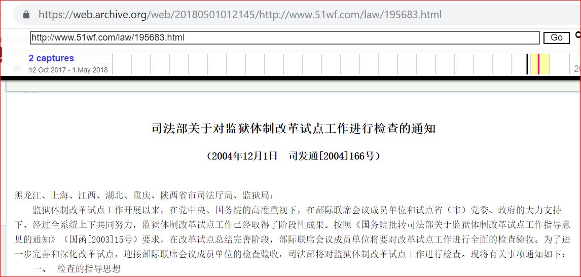 图1.3司法部关于对监狱体制改革试点工作进行检查的通知的截图