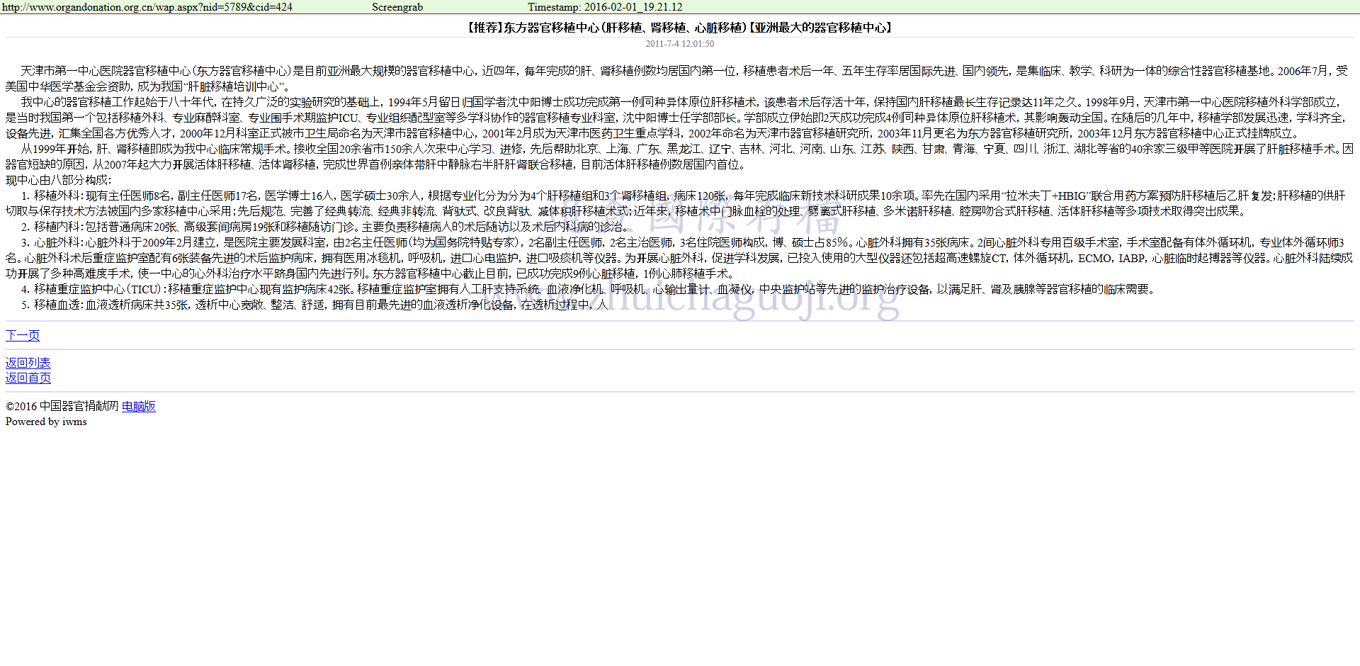 [95] 天津市第一中心医院 – 肝移植外科 – 宋文利 挂号网http://web.archive.org/web/20160123052832/http://www.guahao.com/expert/…
